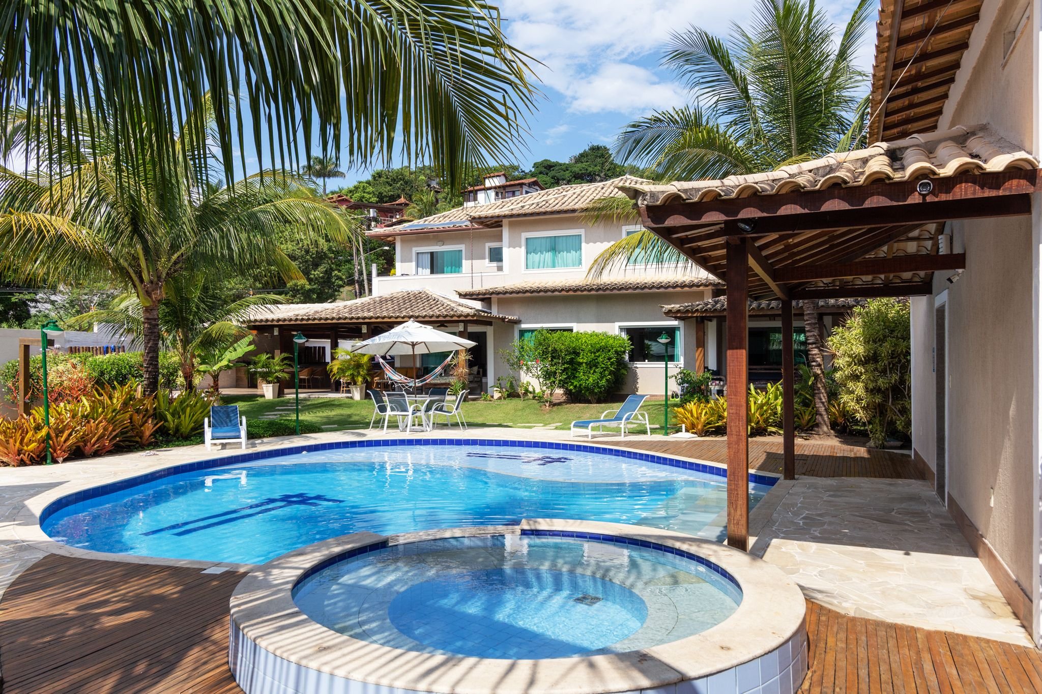 Linda casa com quatro suítes, todas com ar condicionado, localizada estrategicamente entre duas das melhores praias de Búzios (Geribá e Ferradura).